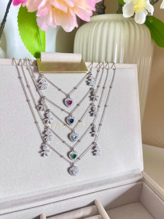 Collana Bebè di Zirconi con Catenina Sferette Alternate e Cuore Pavè Colorato
