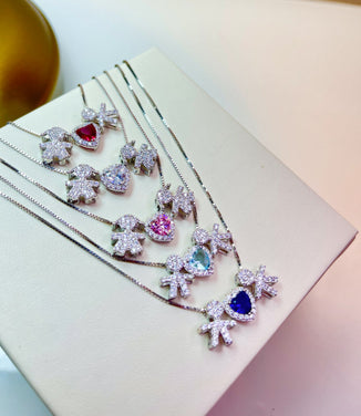 Collana Bebè di Zirconi Modello Catenina Passante con Cuore Colorato