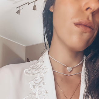 Chocker Cuore Pare di Zirconi con Filo di Perle