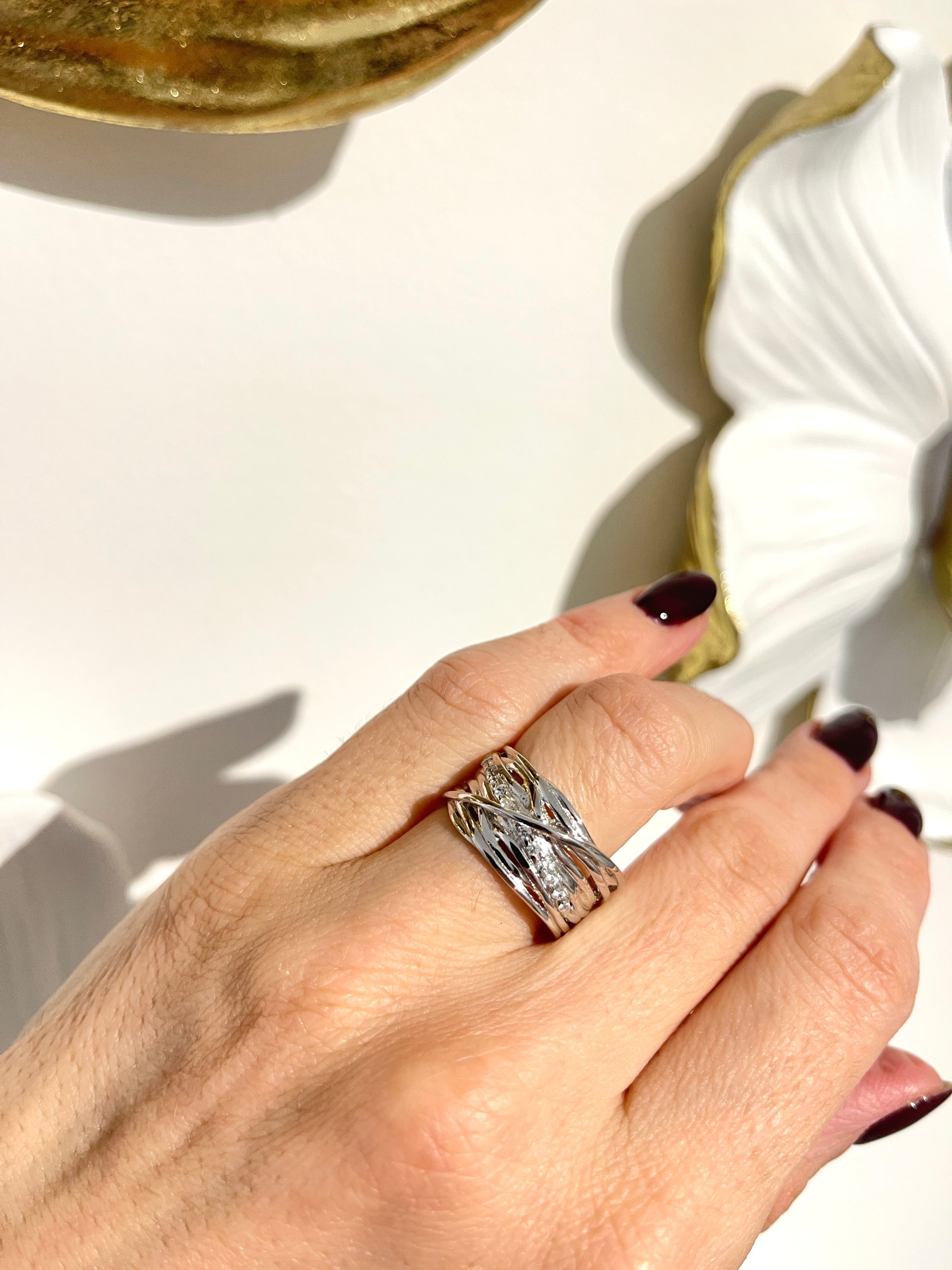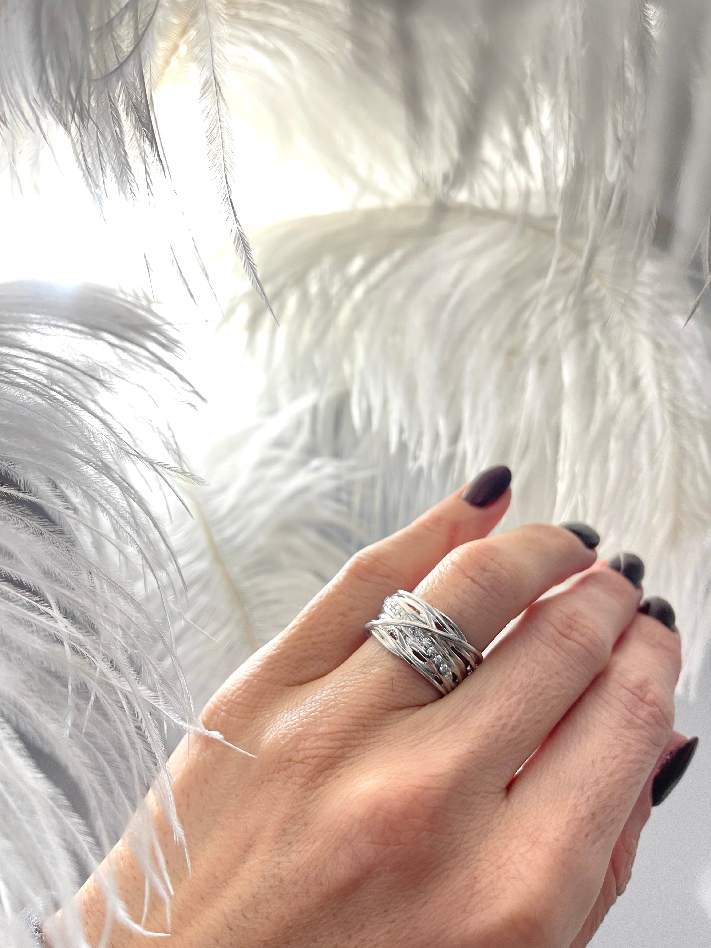 Anello Filo della Vita, realizzato in Argento925, NikeelFree, Galvanica in Oro18kt. Delicatissimo filo di Pietre Cubic Zirconia a giro lungo tutto l'anello che va ad impreziosirlo ed esaltarne la bellezza grazie alla luminosità delle pietre. Esclusivamente nella Galvanica Oro Bianco.