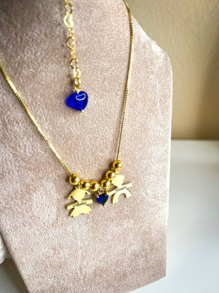 Collana Bebè Personalizzata con Punto Luce Cuore Swarowski Blu