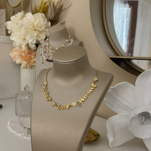 Collana Multi Nomi con Cuoricini di Pavè di Zirconi