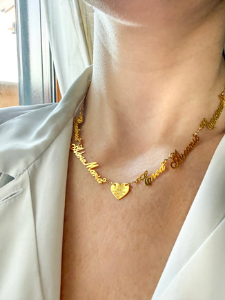 Collana Bebè di Zirconi Modello Piccolo con Cuore Rosso