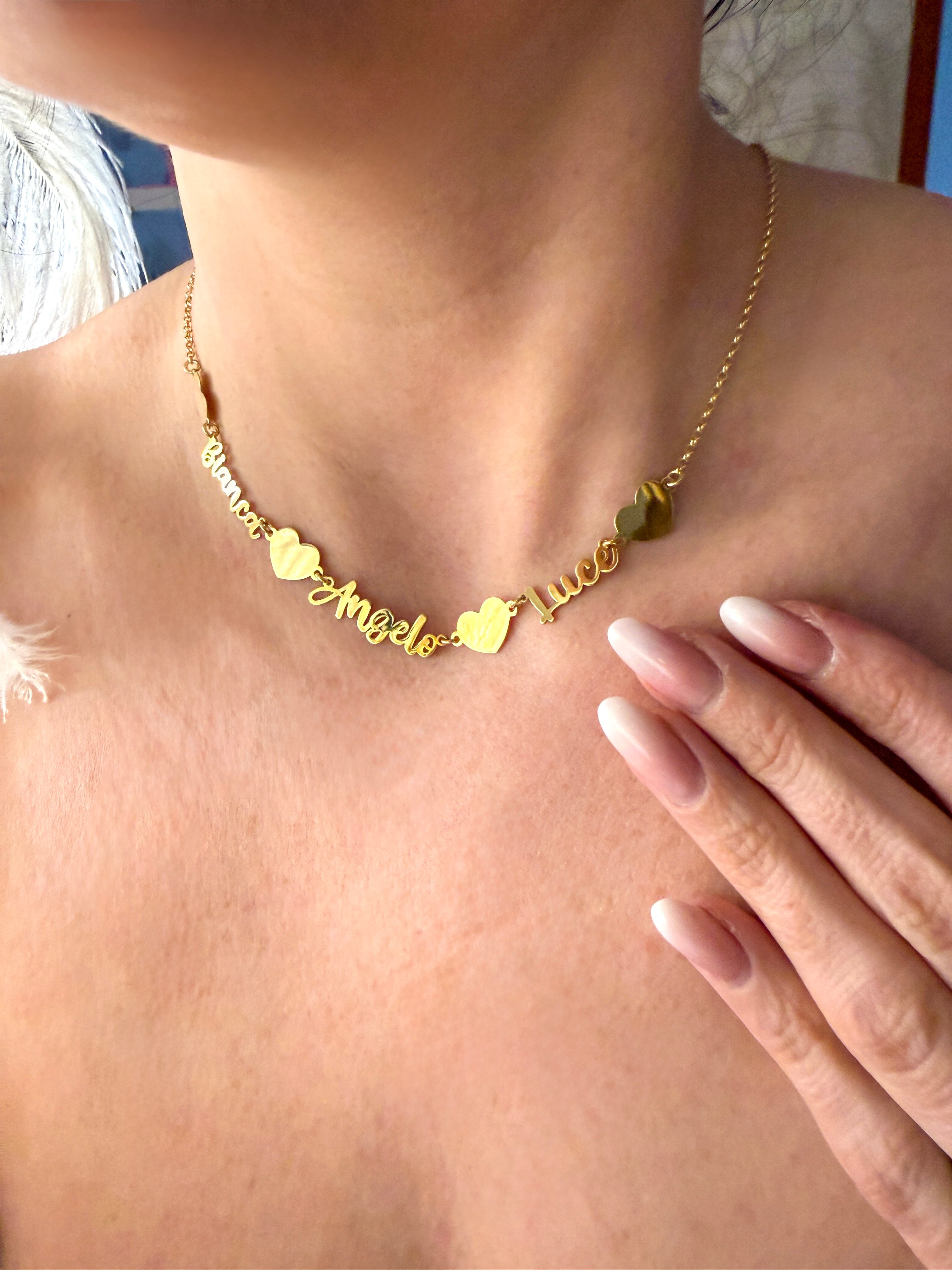 Collana Multi nomi con Cuoricini Semplici Realizzata Interamente a Mano in Argento925, Nikeel Free, con Catenina Veneziana Regolabile da 40cm a 50cm grazie ad un allungo montato sul retro della Catenina che in questo modo consentirà di indossare più collane con effetto scalatura. Tempi di Lavorazione/Produzione: 10/15/18 gg lavorativi.  Specificare nell'Area...