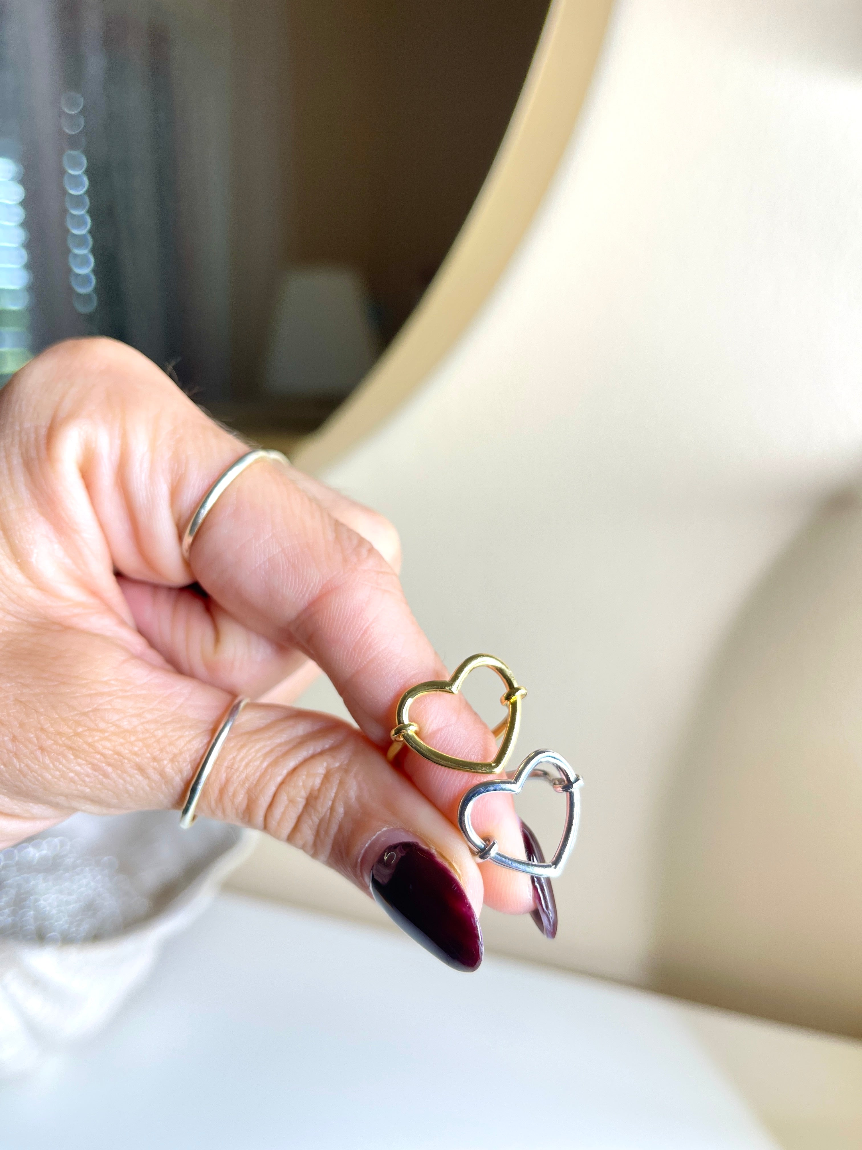 Anello a forma di Cuore Forato con agganci realizzato in Argento925, NikeelFree con Gambo Regolabile. Disponibile nelle Finiture: Oro Bianco - Oro Giallo - Oro Rosa. Tempi di lavorazione e produzione: 24/48h, salvo disponibilità altrimenti 10/16 gg. lavorativi.