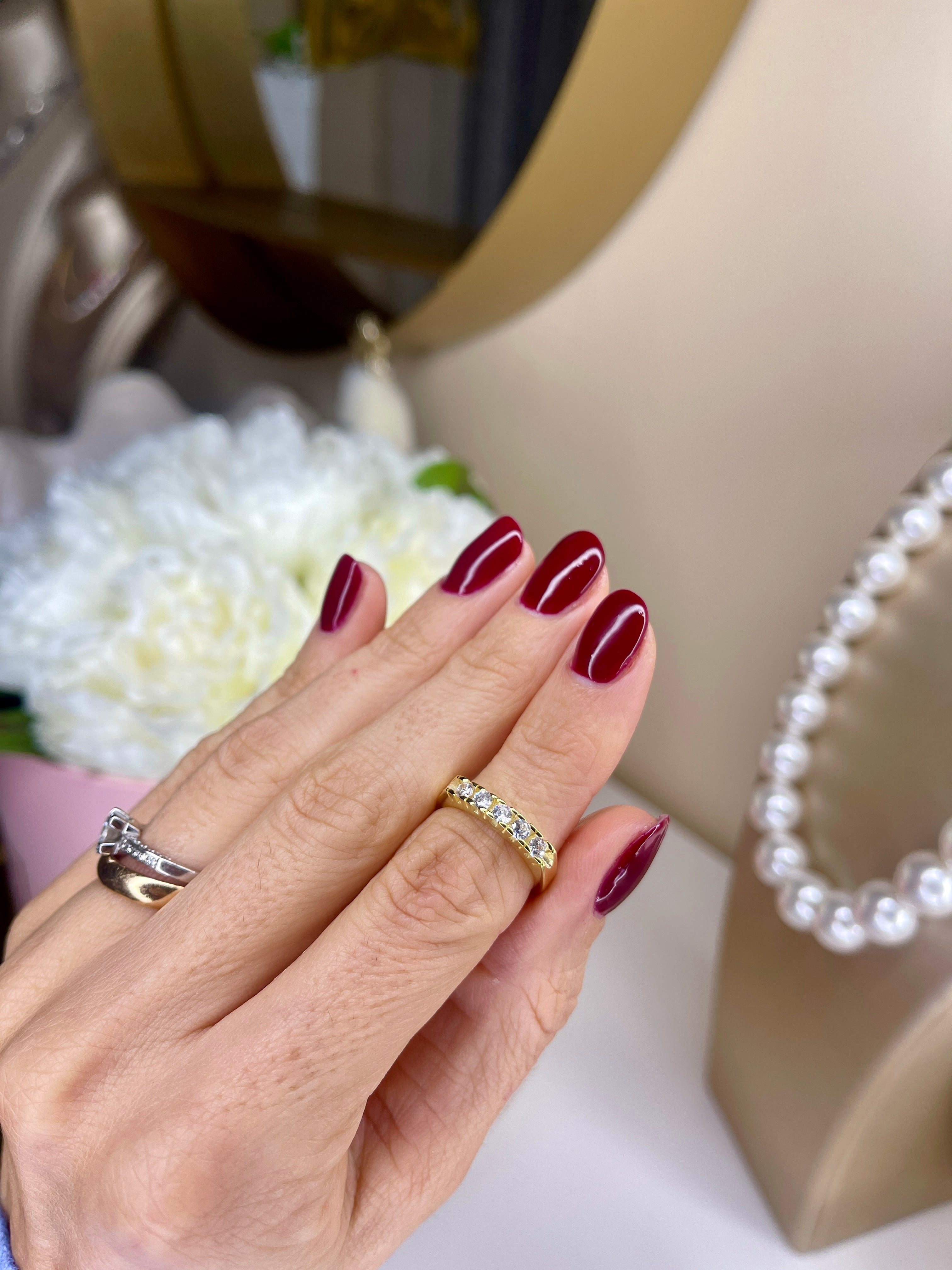 Mezza Veretta con 5 Pietre Cubic Zirconia