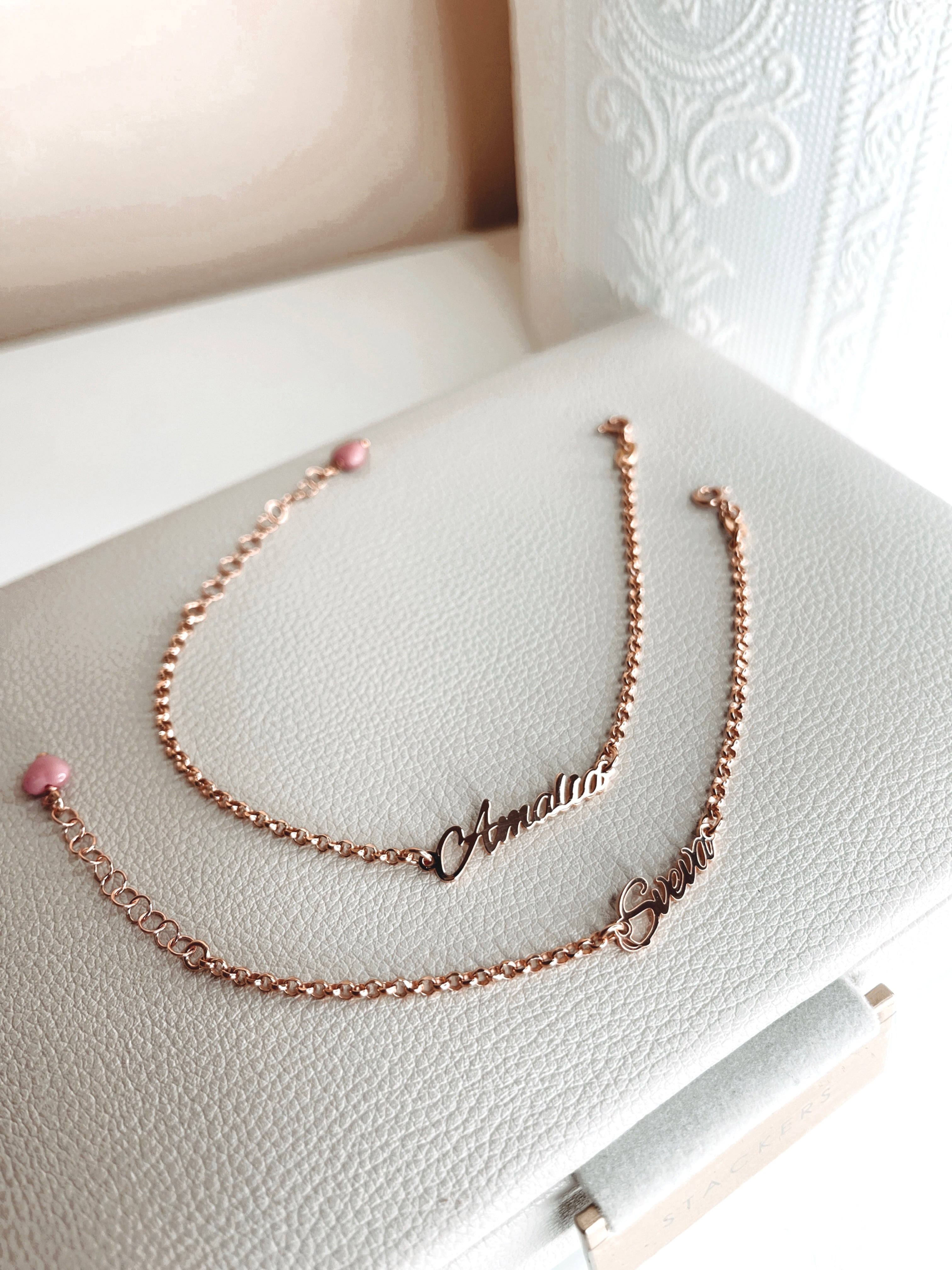 Bracciale con Nome realizzato in Argento925 NikeelFree, Galvanica in Oro18kt, Catena Rollò Regolabile. Disponibile nelle Finiture: Oro Bianco - Oro Giallo - Oro Rosa. Tempi di Lavorazione e Produzione: 6/10/16/19 gg. lavorativi.