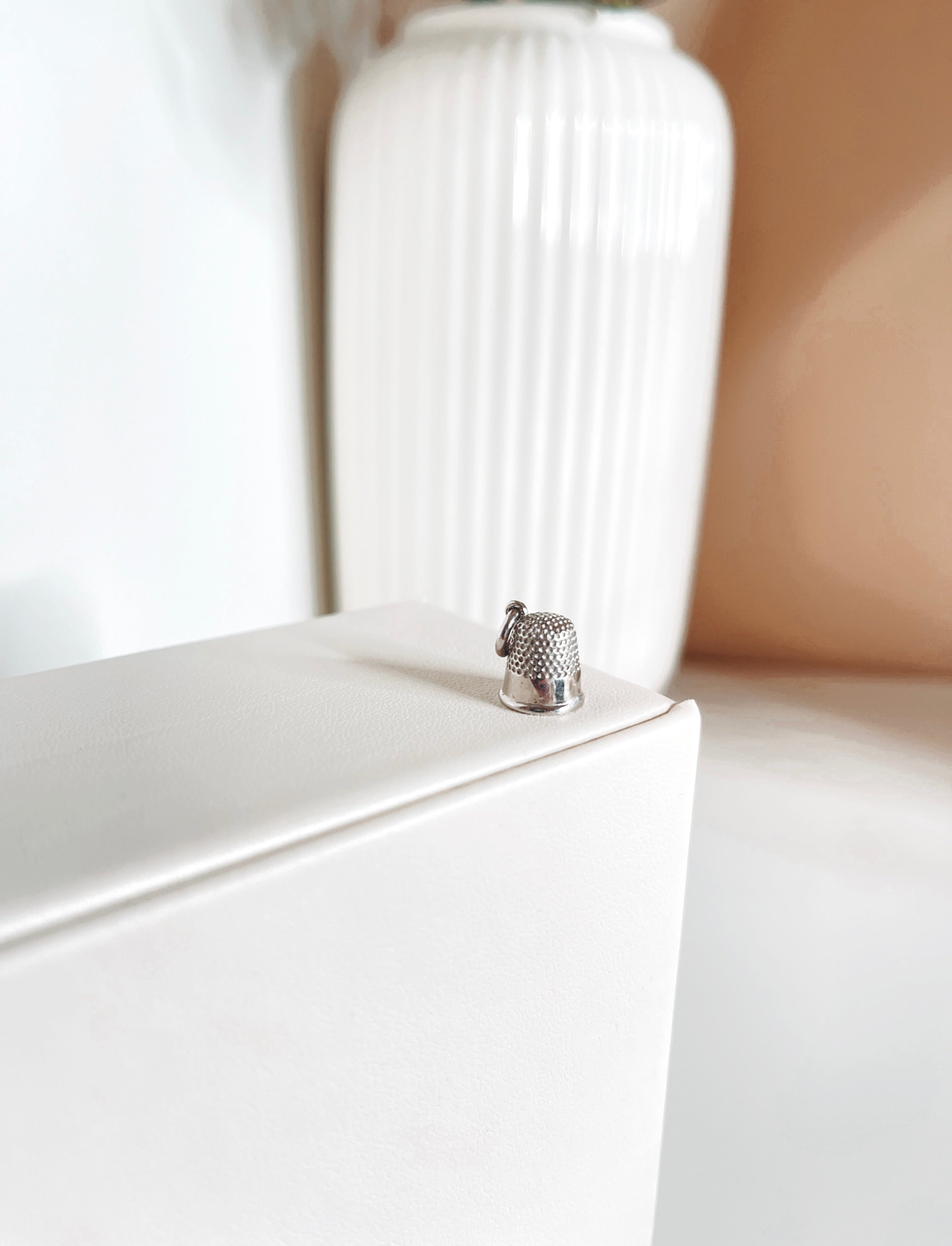 Ciondolo a forma di Ditale reazlizzato in Argento925 NikeelFree con Galvanica in Oro18kt. Disponibile nelle Finiture Oro Bianco - Oro Giallo - Oro Rosa. Si Consiglia la Finitura Oro Bianco. Si cosiglia la finitura: Oro Bianco.Tempi di Lavorazione e Produzione: 24/48h salvo disponibilità di Magazzino, altrimenti 10/16 gg. lavorativi.