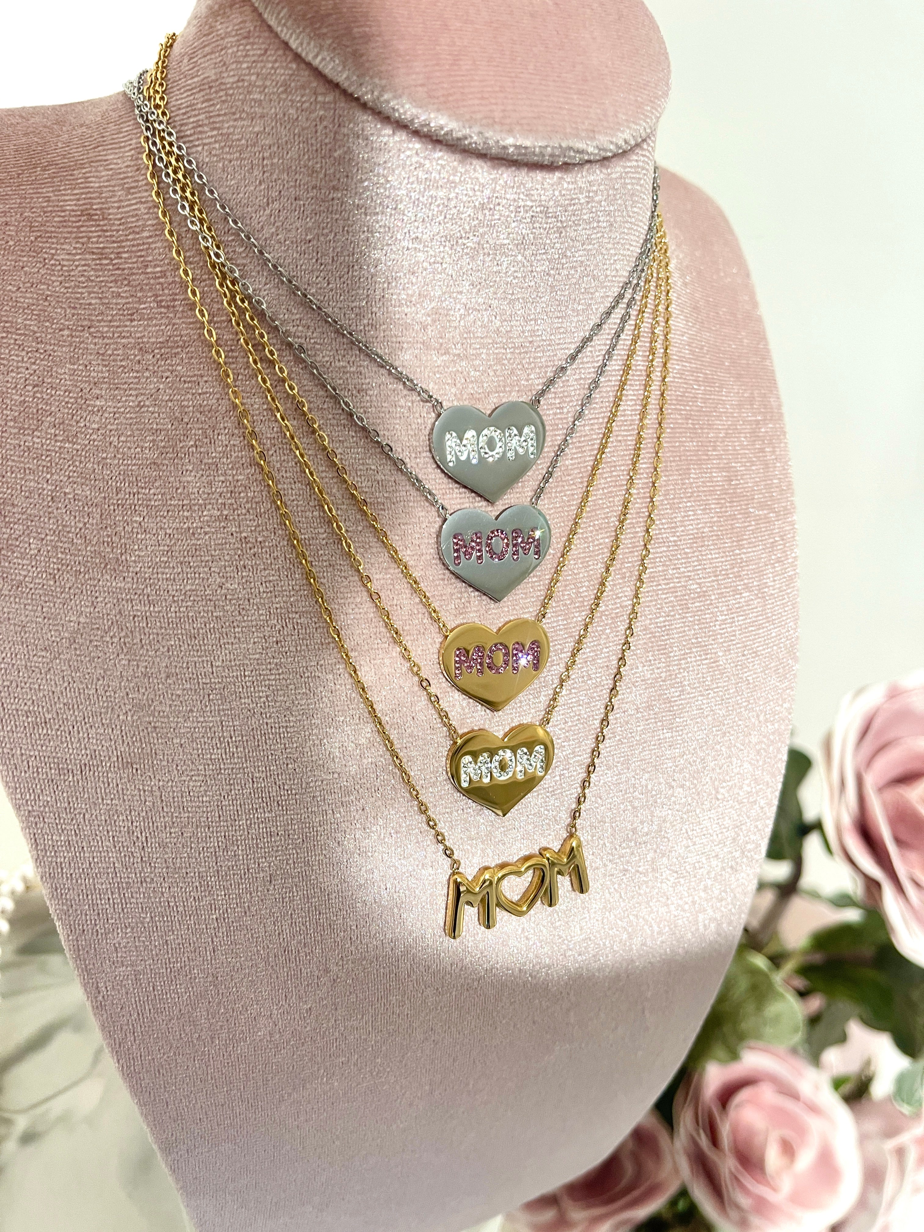 Collana con Cuore Scritta MoM di Strass realizzata in Acciaio Inossidabile Disponibile nelle Finiture: Silver o Gold. Tempi di Spedizione: 24/48h salvo Disponibilità di Magazzino altrimenti 10 gg. lavorativi.