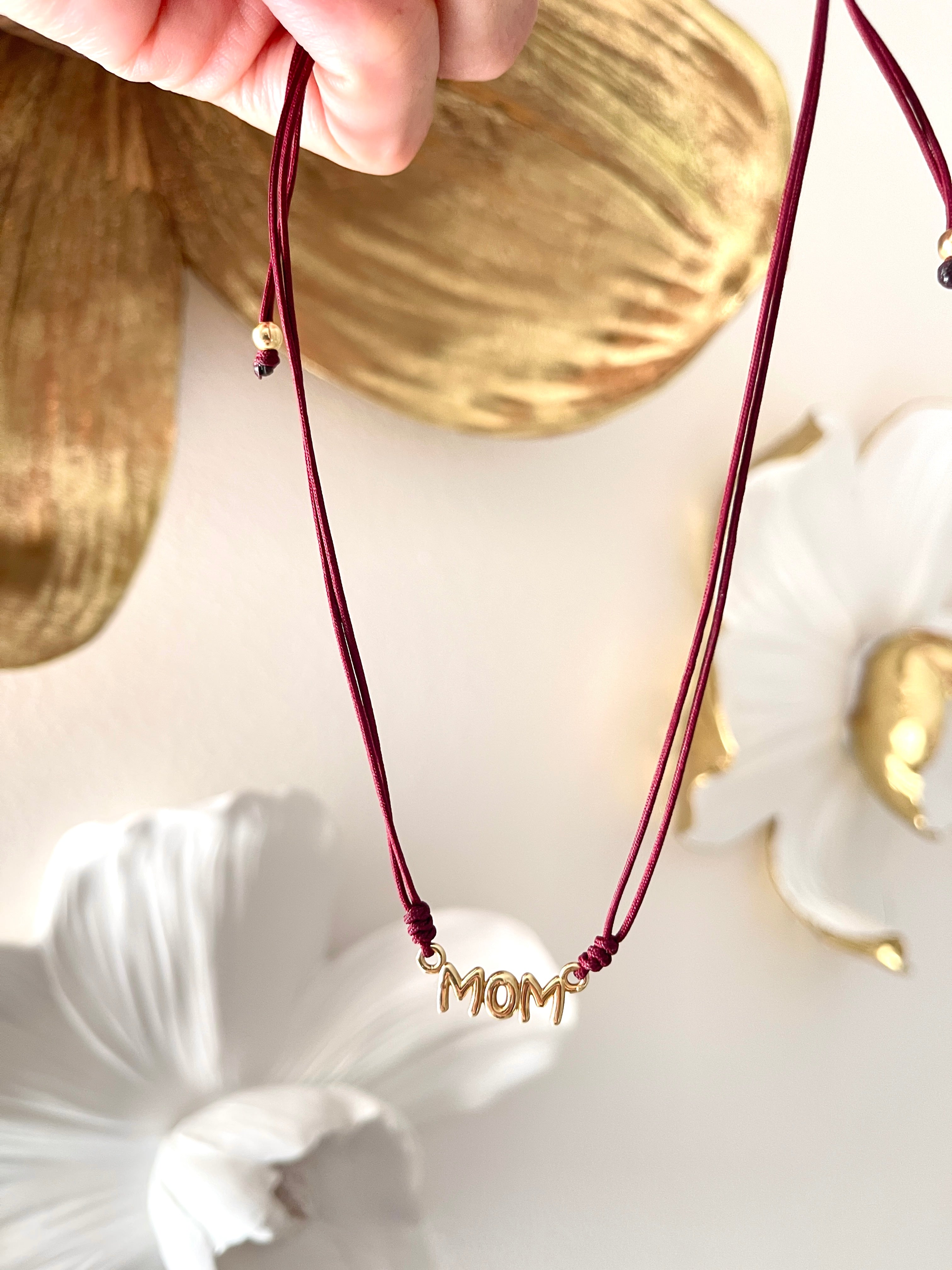Collana MoM con Cordoncino in Macramè Bordeaux