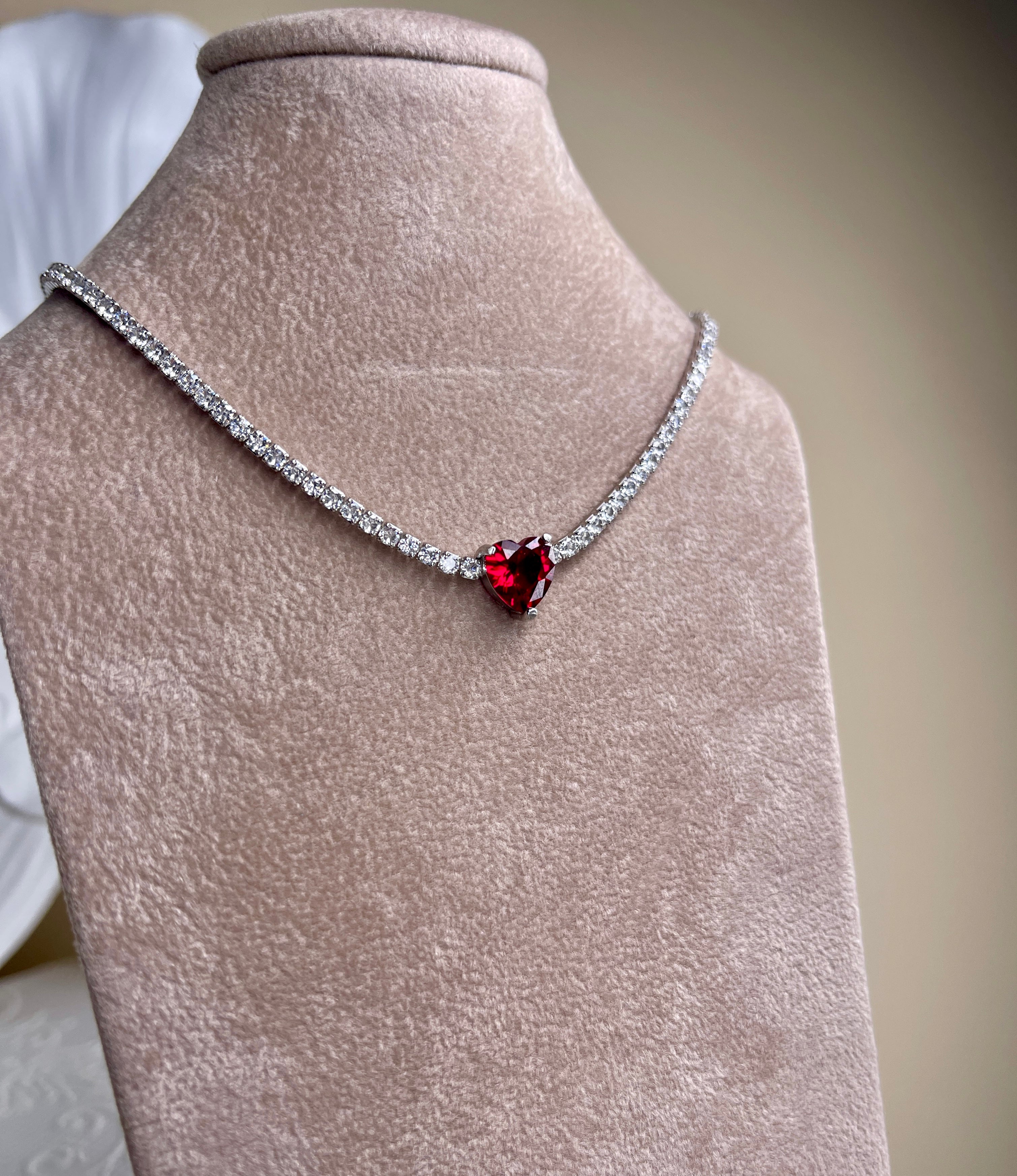Collana Tennis con Cuore in Acquamarina Idrotermale